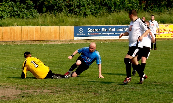 Bei schönen, fast schon zu schönen Sommerwetter (die Nr. 8 spielte sogar ohne Radlerhose) man vermuten, dass es die schon aufgestiegene 2. Herren es heute etwas ruhiger angehen lies, aber weit gefehlt, es wurde ein Fußballfest mit vielen Torraumszenen und Toren. Dem Hollebener Torwart flogen die Bälle nur so um die Ohren - und nicht nur von den Lieskauern.